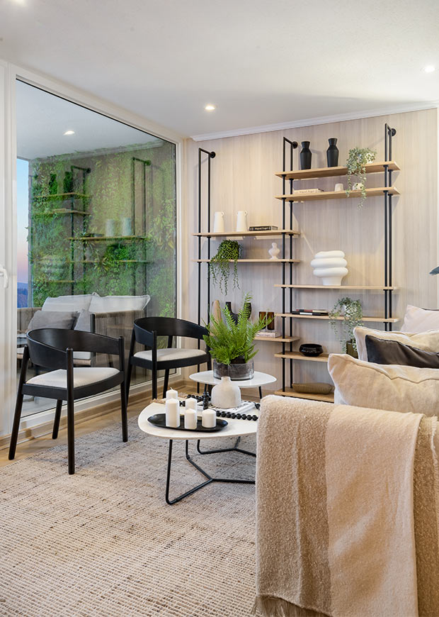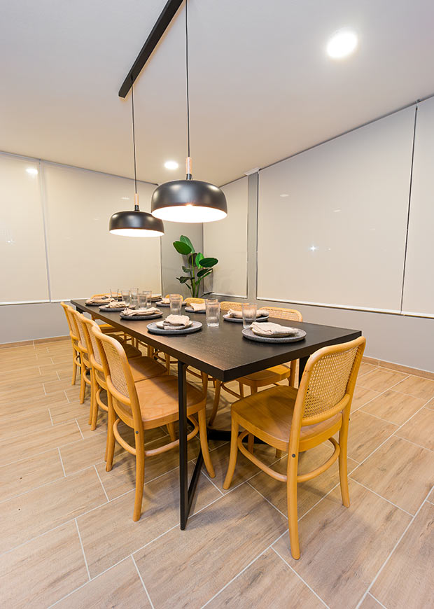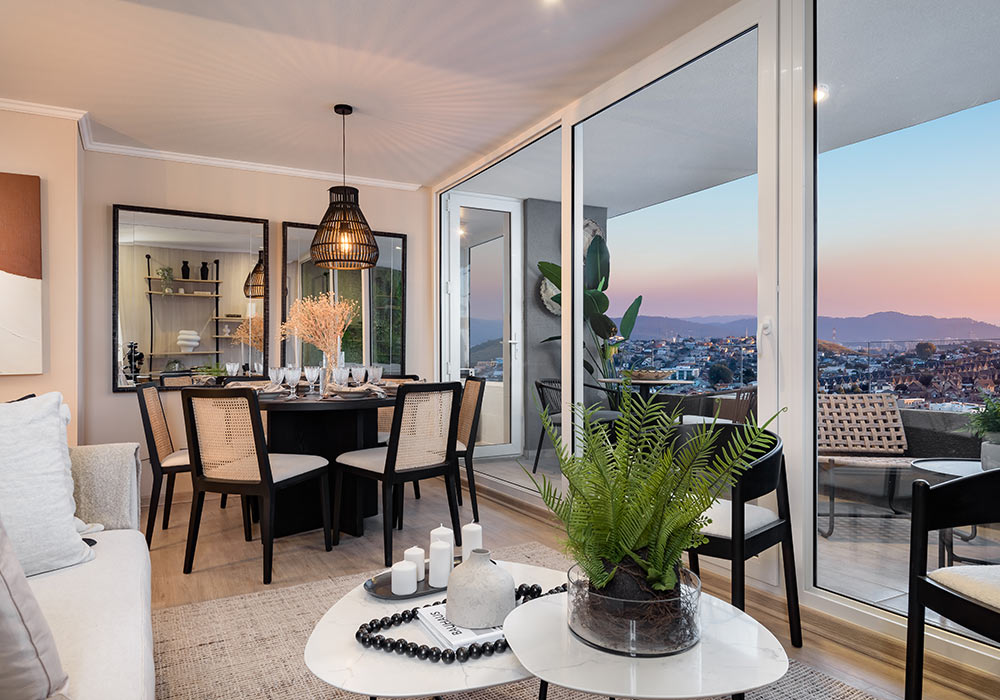 Diseñamos amplias terrazas con baranda vidriada para que se conviertan en el centro de reuniones con familia y amigos.