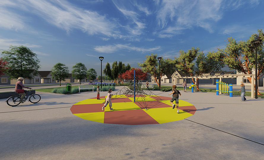 Espacios diseñados para llenarlos de momento únicos e inolvidable al aire libre: Amplias áreas verdes con juegos infantiles, maquinas de ejercicio, parque deportivo para mascotas y local comercial.