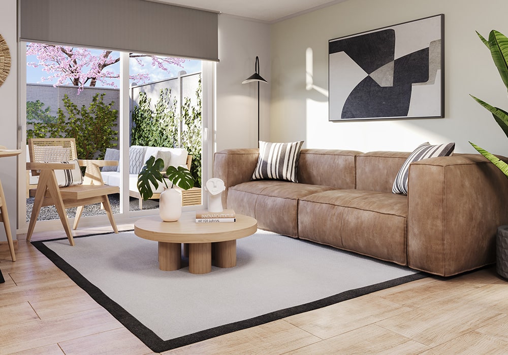 Creamos tu hogar con espacios para disfrutar y llenar de nuevos momentos. Encuentra ambientes luminosos y cálidos, con ventanas de PVC y termopanel y piso de porcelanato en toda la casa.