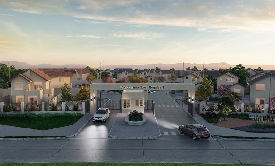 Las imágenes, terminaciones, planos y superficies contenidos en esta ficha, corresponden a las características generales del proyecto “Condominio Los Nogales II". Las imágenes son referenciales, y no constituyen necesariamente una representación de la realidad, se aclara que la vivienda no incluye decoración, accesorios ni equipamientos, consulte directamente en la sala de ventas sobre las características de la propiedad. El proyecto no incluye paisajismo (pasto, árboles, arbustos, etc) ni huella o pastelones peatonal o vehicular de acceso. Las superficies total y útil se definen conforme al Art. 1.1.2. OGUC, en relación a DDU 110 de fecha 14/08/2002, Art. 5.1.11. O.G.U.C y DDU 361 de fecha 16 de junio de 2017. Lo anterior, de conformidad con lo dispuesto en el artículo 18 inciso 7° de la L.G.U.C.