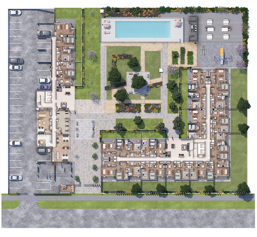 Amplias áreas verdes con juegos infantiles y piscina para llenar tus tardes de increíbles momentos junto a los que más quieres.